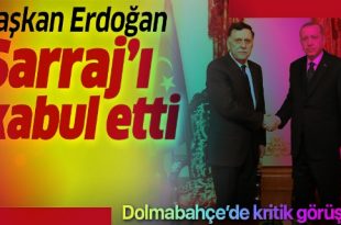Son dakika haberine göre, Başkan Recep Tayyip Erdoğan, Libya Ulusal Mutabakat Hükümeti (UMH) Başkanlık Konseyi Başkanı Fayez Al Sarraj’ı kabul etti. Alınan bilgilere göre, Cumhurbaşkanlığı Dolmabahçe Çalışma Ofisi’ndeki akşam saatlerinde gerçekleşen kabul, basına kapalı gerçekleştirildiği bildirildi. Kaynaklar Başkan Recep Tayyip Erdoğan, Libya Ulusal Mutabakat Hükümeti (UMH) Başkanlık Konseyi Başkanı Fayez …