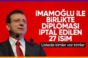 İstanbul Üniversitesi Yönetim Kurulu, İBB Başkanı Ekrem İmamoğlu ile birlikte 27 kişinin daha diplomasını iptal etti. Kararın ardından bu isimler de ortaya çıktı. İşte detaylar… İstanbul Büyükşehir Belediye (İBB) Başkanı Ekrem İmamoğlu, CHP’nin Cumhurbaşkanı adayı olmak için önseçime hazırlık yaparken İmamoğlu hakkında devam eden “evrakta sahtecilik” soruşturmasıyla ilgili çarpıcı bir …