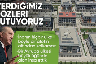 250 Bininci Afet Konutu Teslim Töreni’nde konuşan Cumhurbaşkanı Erdoğan, deprem bölgesinin dev bir şantiyeye dönüştüğünü ve Avrupa ülkesi büyüklüğündeki bir alanın inşa edildiğini söyledi. Erdoğan, “Tüm Türkiye’ye aşk ile hizmet edeceğiz” ifadelerini kullandı. 6 Şubat 2023’te üst üste meydana gelen Kahramanmaraş merkezli iki yıkıcı deprem 11 ili etkiledi. Depremde yıkılan …