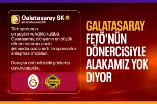 Galatasaray Kulübü, resmi sitesinden Maydonoz Döner isimli yemek şirketi zincirine yönelik FETÖ soruşturmasının ardından bir açıklama yayınladı. FETÖ’ye finansman sağladığı gerekçesiyle Maydonoz Döner’e düzenlenen operasyonun ardından Galatasaray Kulübü açıklama yaptı. Antalya merkezli 31 şehirde yapılan operasyonda, aralarında 10 kamu personelinin de bulunduğu 353 şüpheli gözaltına alındı. Sosyal medyada, Maydonoz Döner’in …