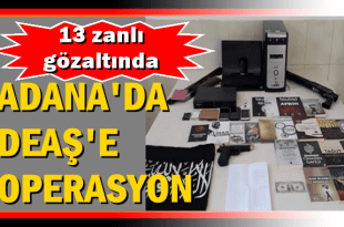 Adana’nın Saimbeyli ilçesinde kanlı terör örgütü DEAŞ’a yönelik operasyon düzenlediği, yapılan operasyonda örgütsel yayınlar ve mühimatlarla birlikte 13 şüphelinin yakalandığı bildirildi. Adana İl Jandarma Komutanlığınca; Adana ili Saimbeyli İlçesinde DEAŞ Terör Örgütünün faaliyetlerinin ortaya çıkarılmasına yönelik yürütülen planlı faaliyet kapsamında (3) ayrı adreste operasyon düzenlediği bildirildi. Adana Valiliğinden yapılan açıklamaya …