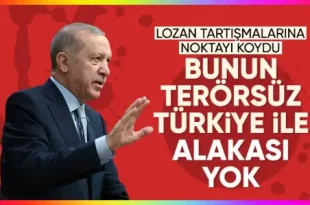 Arnavutluk dönüşü önemli açıklamalarda bulunan Cumhurbaşkanı Erdoğan, “Lozan” hakkındaki sorulara da yanıt verdi. Cumhurbaşkanı, “Devletimizin birliği, bütünlüğü, üniter yapısı, rejimi, bayrağı, resmi dili gibi konuların tartışmaya açılmasına rıza göstermeyiz” dedi. Cumhurbaşkanı Recep Tayyip Erdoğan, Avrupa Siyasi Topluluğu Altıncı Zirvesi’ne katılmak üzere gittiği Arnavutluk’un başkenti Tiran’dan dönüşünde uçakta gündeme ilişkin değerlendirmelerde …