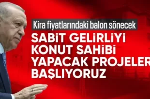 Ev fiyatlarındaki düşüş için bir sosyal konut seferberliği başlatmayı planladıklarını söyleyen Cumhurbaşkanı Erdoğan, “Ülkemizde bir sosyal konut seferberliği başlatmayı planlıyoruz. Sabit gelirli vatandaşlarımızı konut sahibi yapmanın adımlarını atacağız” dedi. AK Parti Bursa 8. Olağan İl Kongresi’nde konuşan Cumhurbaşkanı Recep Tayyip Erdoğan, konut fiyatlarına değindi. Cumhurbaşkanı Erdoğan, vatandaşlara konut fiyatlarında yeni adımlar …