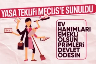 Milliyetçi Hareket Partisi, geliri bulunmayan ev hanımlarının sosyal güvenlik sistemine dahil edilmesini amaçlayan bir kanun teklifini Meclis’e sundu. Teklif, Naci Şanlıtürk öncülüğünde hazırlanarak Türkiye Büyük Millet Meclisi’ne iletildi. Sunulan düzenlemeye göre, herhangi bir gelir elde etmeyen ev hanımlarının sigorta kapsamına alınması ve ödenmesi gereken primlerin devlet tarafından karşılanması planlanıyor. Teklifin …