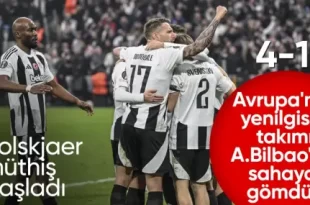 UEFA Avrupa Ligi’nin 7. haftasında temsilcimiz Beşiktaş, sahasında Athletic Bilbao’yu 4-1’lik skorla mağlup etti. UEFA Avrupa Ligi’nde 7. hafta maçlarının heyecanı yaşanıyor. Ole Gunnar Solskjaer yönetimindeki temsilcimiz Beşiktaş ile Ernesto Valverde’nin çalıştırdığı İspanyol ekibi Athletic Bilbao, Avusturyalı hakem Julian Weinberger’in düdük çaldığı müsabakada Dolmabahçe’de karşı karşıya kaldı. Beşiktaş, rakibini Athletic …