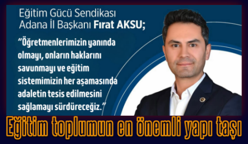 Eğitim Gücü Sendikası Adana İl Temsilcisi Fırat Aksu, açıklamasını şu dileklerle sonlandırdı: “2024-2025 eğitim-öğretim yılının hepimiz için hayırlı olmasını, başarılarla dolu bir yıl olarak geçmesini diliyorum. Eğitimde her zaman en iyiyi hedefleyecek, öğrencilerimizin ve öğretmenlerimizin yanında olmayı sürdüreceğiz. Hep birlikte daha güçlü, daha başarılı bir eğitim yılına adım atarken, bu sürecin tüm camiamıza hayırlar getirmesini temenni ediyorum.