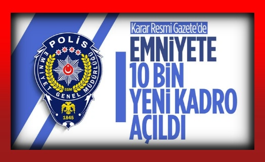 Cumhurbaşkanı Erdoğan’ın imzasıyla yayınlanan kararnameye göre Emniyet Genel Müdürlüğü’ne toplam 10 bin kişilik polis kadrosu açıldı.
