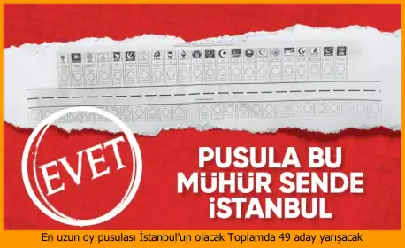 31 Mart yerel seçimlerine 24 gün kala oy pusulalarının boyutları belli oldu. Toplamda 49 adayın İBB Başkan adaylığı için yarışacağı seçimlerde en uzun oy pusulası 97 santimetre ile İstanbul olacak.