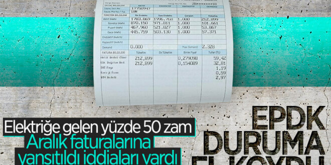 1 Ocak’tan itibaren geçerli olan elektrik tarifelerinin aralık faturalarına yansıtıldığı iddiaları, Enerji Piyasası Düzenleme Kurumu’nu (EPDK) harekete geçirdi.