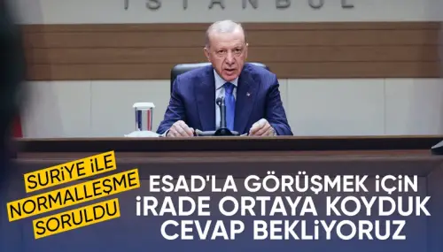 Erdoğan, Türkiye ile Suriye ilişkilerinin normalleşmesi için Esad ile görüşme iradesi koyduklarını belirtti.