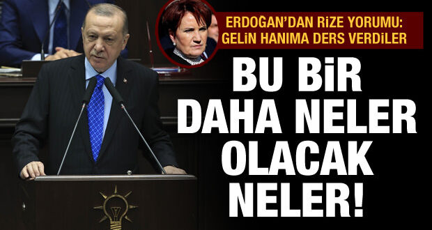 AK Parti grup toplantısında gündeme dair değerlendirmelerde bulunan Cumhurbaşkanı Erdoğan, Akşener’in Rize ziyareti sırasında yaşanan gerilimle ilgili konuştu, ” Gelin hanıma çok ileri gitmeden ders verdiler.” dedi.