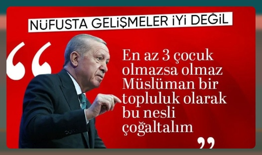 Cumhurbaşkanı Recep Tayyip Erdoğan, Türkiye’de nüfus artış hızının istenilen seviyeye ulaşmadığını belirterek, bu konudaki endişelerini bir kez daha dile getirdi. Erdoğan, “Gelişmeler şu an itibarıyla iyi değil. Benim sürekli vurguladığım bir söz var: En az üç çocuk. Bu, güçlü bir ailenin temel şartıdır” dedi.