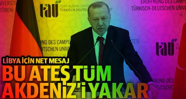 Türk-Alman Üniversitesi’nin açılış töreninde konuşan Cumhurbaşkanı Erdoğan “Bir an önce sükunet sağlanmazsa Libya’daki kaos ortamı tüm Akdeniz havzasını etkileyecektir” dedi. Berlin’deki konferansı önemli bir adım olduğunu da vurgulayan Erdoğan, bir kez daha uluslararası topluma seslendi: Uluslararası toplumun Suriye’de düştüğü hataya Libya’da düşmemesini temenni ediyoruz.