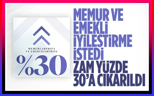 Cumhurbaşkanı Erdoğan, memur ve emekli maaş zam oranının yüzde 25’den 30’a çıkartıldığını açıkladı.