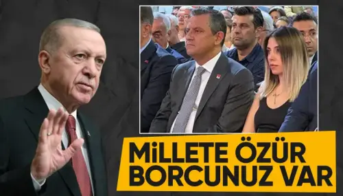 umhurbaşkanı Erdoğan, AK Parti’ye oy verenlere ‘gerizekalı’ diyen Dilruba Kayserilioğlu’nu protokolde ağırlayan Özgür Özel’e tepki göstererek, “CHP lideri Sayın Özel’in millete bir özür borcu olduğuna inanıyoruz.” dedi.