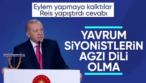 Erdoğan, kendisini bölen provokatöre şu ifadeleri kullandı: Yavrum, Siyonistlerin burada dili, ağzı olma! Aynen Siyonistlerin ağzı, gözü olmak suretiyle burayı provoke etmeye ne kadar çalışırsanız çalışın netice alamazsınız. Dünyadaki Siyonistler Tayyip Erdoğan’ın nerede durduğunu çok iyi biliyor. Ama siz halen anlayamamışsınız.