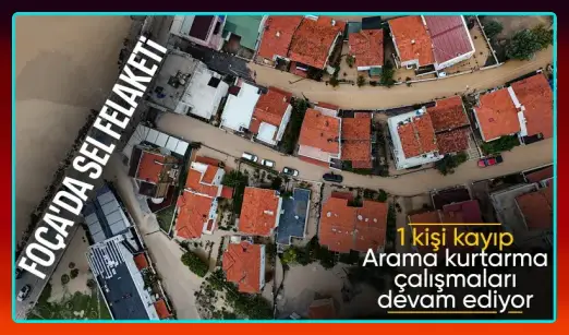Foça ilçesi Mustafa Kemal Atatürk, Fevzi Çakmak ve Cumhuriyet mahallelerinde saat 12.30 sıralarında başlayan yoğun yağış sele neden olurken, çok sayıda ev ve iş yerini su bastı.