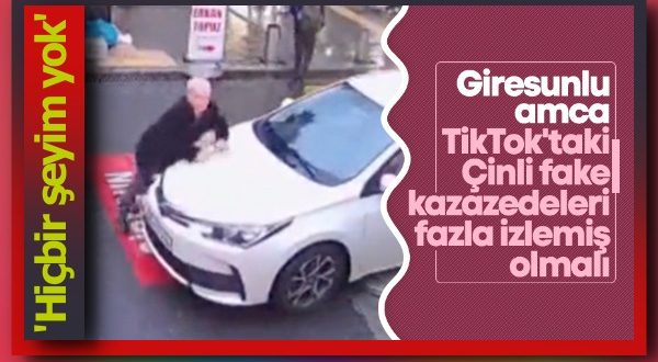 Giresun’da kendini aracın üzerine atan yaşlı amcanın görüntüleri, akıllara Çin’de sigortadan para alabilmek için yapılan numarayı getirdi.