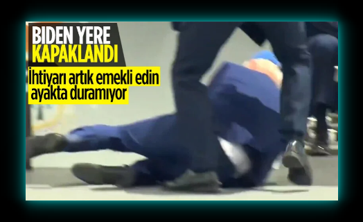 Ayağa kalktıktan sonra yerde duran bir şeye işaret eden Biden’ın ayağının oraya takıldığını ima ettiği görüldü.