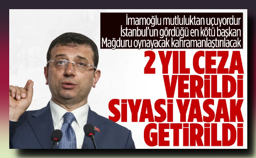 Yüksek Seçim Kurulu üyelerine hakaret ettiği gerekçesi ile yargılanan İBB Başkanı İmamoğlu, 2 yıl 7 ay 15 gün hapis ve siyasi yasak cezasına çarptırıldı.