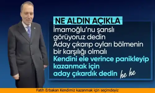 Ayrıca 28 Şubat sürecinde Necmettin Erbakan’a operasyon çeken isimler arasında yer alan Murat Yetkin’e konuşan Fatih Erbakan, Ekrem İmamoğlu’nun seçimlerde daha şanslı olduğunu söylemişti.