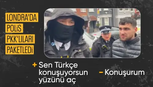Londra’da terör örgütü PKK’ya yönelik düzenlenen operasyonda 7 kişi gözaltına alınırken Türk kökenli bir polisin terör sempatizanlarıyla yaşadığı diyalog gündem oldu. PKK’lılar, polisin Türkçe konuşmasına tepki göstererek “Biz Kürt’üz, Türkçe konuşamazsın” dedi.