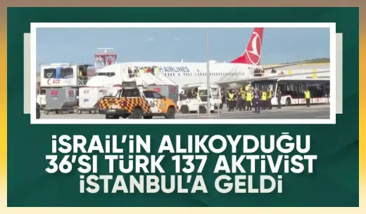 İsrail’in yasa dışı şekilde alıkoyduğu Küresel Sumud Filosu’ndaki 36’sı Türk 137 aktivist, İstanbul Havalimanı’na ulaştı.