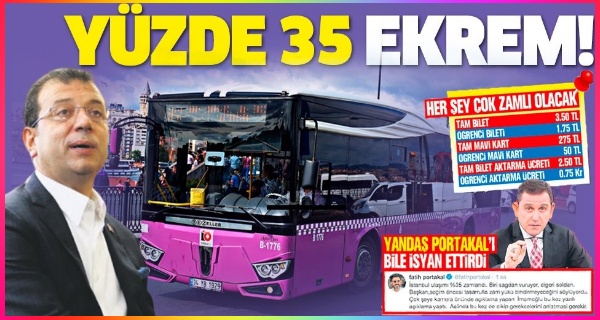 İstanbul’da Ulaşım Koordinasyon Merkezinin (UKOME) kararıyla toplu ulaşım ücretlerine yüzde 35 zam yapıldı. Özel halk otobüsü, İETT, metro ve metrobüs tarifelerinde en kısa mesafe ücreti 2,60 liradan 3,50 liraya yükseldi. İBB Meclis’inde çoğunluğu elinde bulunduran AK Parti ve MHP’nin zam kararını veto edeceğini bilen CHP’li İBB Başkanı Ekrem İmamoğlu, zammı Meclise getirmeden bürokratlar üzerinden düzenledi. Zam kararını UKOME’nin İBB’den atanan 10 üyesi masaya getirdi 11’inci oyu ise esnaf odası verdi.