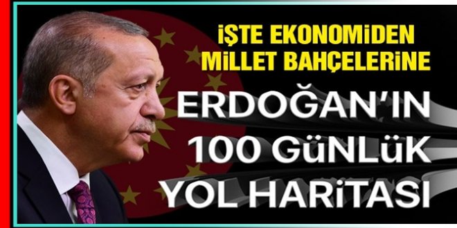 “Kanal İstanbul projesinin ÇED ve etüt proje işlerini tamamlıyoruz. En kısa sürede ihalesini yapıp temelini atacağız.”Cumhurbaşkanı Erdoğan 100 günlük yol haritasını açıkladı. Önümüzdeki 3 ay 10 günde ilk etapta 6 millet bahçesinin inşaatına başlanacak. Kamuda tasarrufa ağırlık verilecek. 30 kütüphane Millet Kıraathanesi’ne dönüştürülecek. İşte ekonomiyi ilgilendiren bakanlıkların ilk 100 günlük eylem planları…