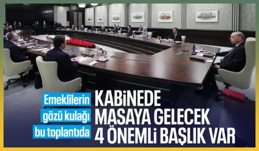 Kabine, önemli başlıkları görüşmek üzere Cumhurbaşkanı Recep Tayyip Erdoğan başkanlığında Beştepe’de toplanacak.