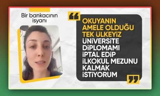 Bankacı kadın yaptığı videolu paylaşımda, kredi talebinde bulunan memur ve kuryelerin aldığı maaşa tepki göstererek, “Lisans diplomamı iptal etmek ve ilkokul mezunu olarak kalmak istiyorum” ifadelerini kullandı.