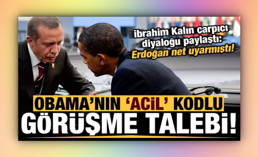 Cumhurbaşkanlığı Sözcüsü İbrahim Kalın, Cumhurbaşkanı Recep Tayyip Erdoğan’ın eski ABD Başkanı Barrack Obama’yı terör örgütü PYD’ye yardım yapacağı gerekçesiyle uyardığı anları paylaştı.