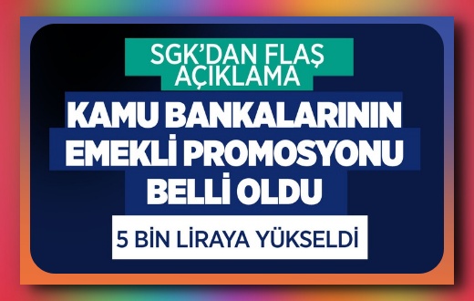 Son dönemde özel bankalar arasındaki maaş promosyonu yarışına kamu bankaları da dahil oldu. Sosyal Güvenlik Kurumu’ndan emekli maaş promosyonuyla ilgili flaş bir açıklama geldi. Kamu bankalarında SGK emeklilerine 3 yıl için ödenen promosyon tutarı 5 bin liraya çıkarıldı.