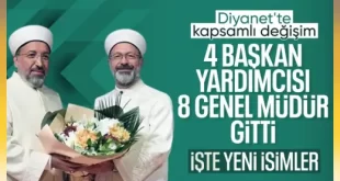 Resmi Gazete’de Cumhurbaşkanı Recep Tayyip Erdoğan’ın imzasıyla yayınlanan kararlara göre, Diyanet İşleri Başkanlığı’nda 4 yardımcı ve 8 genel müdür değişti. Geçtiğimiz günlerde Diyanet İşleri Başkanlığı’nda bayrak değişimi yaşandı. Diyanet İşleri Başkanlığı görevini Prof. Dr. Safi Arpaguş, Ali Erbaş’tan devraldı. Bu görev değişiminden sonra kurumda da köklü değişiklikler yaşanıyor. Cumhurbaşkanı Recep …