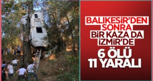 İzmir’in Bergama ve Kınık ilçesinden Kemalpaşa ilçesindeki Hamza Baba Türbesi'ni ziyarete gelenleri taşıyan minibüs, dönüş yolunda uçuruma yuvarlandı. 2'si çocuk 6 kişi hayatını kaybetti. İzmir'in Kemalpaşa ilçesinde Hamza Baba Türbesi'ni ziyaret edenleri taşıyan 35 L 1610 plakalı minibüs, İzmir'e dönüş yolunda sürücüsünün direksiyon hakimiyetini kaybetmesi sonucu uçuruma burun üstü çakıldı. Durumun bildirilmesi üzerine olay yerine İzmir [...]