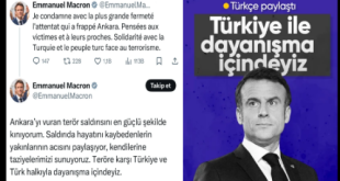 Fransa Cumhurbaşkanı Emmanuel Macron, TUSAŞ’a yönelik terör saldırısı nedeniyle taziyelerini iletirken, teröre karşı Türkiye ve Türk halkıyla dayanışma içinde olduklarını belirtti. Türkiye’nin savunma sanayisinde önemli kurumlarından olan TUSAŞ’ın Ankara’daki tesisine yapılan terör saldırısına yurt tışından tepkiler sürüyor. Fransa Cumhurbaşkanı Emmanuel Macron, Türk Havacılık ve Uzay Sanayii AŞ’nin (TUSAŞ) Kahramankazan yerleşkesine …