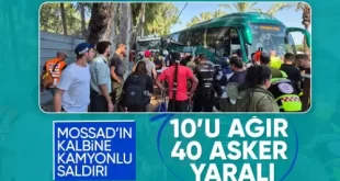 Tel Aviv MOSSAD karargahı yakınlarında bir kamyonun otobüste ve durakta bekleyen İsrail askerlerinin arasında dalmasıyla 10’u ağır 40 asker yaralandı. Son dakika haberine göre İsrail’de kayonlu bir saldırı meydana geldi. İsrail basınına göre MOSSAD karargahı yakınlarında bir kamyon durakta ve otobüste bekleyen İsrail askerlerinin arasında daldı. İsrail polisinden yapılan açıklamada …