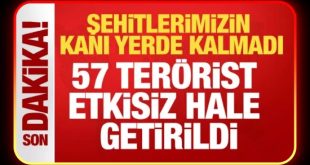 Son 24 saatte Irak’ın ve Suriye’nin kuzeyindeki operasyonlarda etkisiz hale getirilen terörist sayısı 57’ye yükseldi. Açıklama Milli Savunma Bakanlığı’ndan yapıldı. Son 24 saatte Irak’ın ve Suriye’nin kuzeyindeki operasyonlarda etkisiz hale getirilen terörist sayısı 57’ye yükseldi. Açıklamada, “Şehitlerimizin kanı yerde kalmadı, kalmayacak. Kahraman Mehmetçik en zorlu arazide PKK’lı teröristlere hain saldırının …