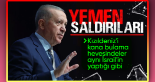 Erdoğan, ABD ve İngiltere’nin Yemen’e saldırıları sonrası Kızıldeniz’de tırmanan gerilime ilişkin konuştu. Bölgede hayata geçirilmek istenen senaryoya işaret eden Erdoğan, İsrail’le ilgili olarak da “Mahkum olacağına inanıyorum” dedi. ABD ve İngiltere, Yemen’e hava saldırıları düzenledi. İsrail de Gazze’deki kanlı saldırılarını sürdürüyor. Cumhurbaşkanı Recep Tayyip Erdoğan, İstanbul’da kıldığı cuma namazı sonrası …