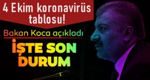 Haberin Detayı İçin TıklayınızBakan Koca 4 Ekim 2020 koronavirüs tablosunu açıkladı!