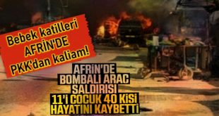 Milli Savunma Bakanlığı, kent merkezinde bomba yüklü yakıt tankerinin infilak etmesi sonucu, 11’i çocuk 40 sivilin hayatını kaybettiğini duyurdu. İnsanlık düşmanı PKK/YPG, Afrin’de yine masum sivilleri hedef aldı. Afrin şehir merkezinde sivillerin yoğun olduğu Racu Caddesi’nde bomba yüklü mazot tankeri infilak ettirildi. Milli Savunma Bakanlığı, teröristlerin, ilk belirlemelere göre 11’i …