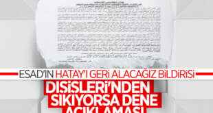 Dışişleri Bakanlığı Sözcüsü Büyükelçi Tanju Bilgiç, Suriye Parlamentosu'nun Hatay'a yönelik skandal bildirisi hakkında, "Hadsiz ve hukuksuz açıklamayı şiddetle reddediyoruz." açıklamasında bulundu. Hatay'ın Türkiye'ye katılışının ardından tam 82 yıl geçerken, Esad rejimindeki Suriye Halk Meclisi skandal bir bildiri ile ülke gündemine oturdu. Resmi kanallar üzerinden yazılı açıklama yapan Suriye Halk Meclisi, Hatay’ın Suriye toprağı olduğunu iddia [...]