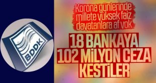 BDDK, müşteri şikayetleri üzerine 18 bankaya toplam 102,1 milyon TL idari para cezası uygulanmasına karar verdi. BDDK, salgınla mücadele sürecinde kurumsal ve bireysel banka müşterilerinden gelen şikayetleri inceledi. Bu kapsamda yapılan incelemeler sonucunda ‘aykırı işlem tesis edilmesi’ gerekçesiyle 18 bankaya toplam 102,1 milyon TL idari para cezası uygulanmasına karar verildi. …