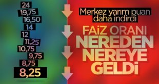 Haberin Detayı İçin TıklayınızMerkez Bankası 50 baz puan düşürerek yüzde 8,75’ten yüzde 8,25’e çekti