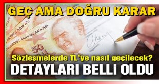Sözleşmelerde TL dönemi getiren tebliğin görüşe açılırken taslağa göre 2 Ocak 2018 öncesi sözleşmeler için 2 ocak kuru kullanılacak. NTV’nin haberine göre TL ile sözleşme için taraflar arasında öncelikle mutabakat aranacak. Taraflar anlaşamazsa 2 Ocak 2018 öncesindeki sözleşmeler için 2 Ocak kuru dikkate alınacak. 2 Ocak 2018 sonrasındaki sözleşmelerde sözleşme …