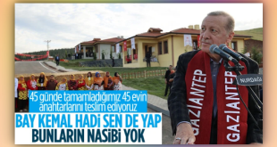 Nurdağı’nda inşa edilen köy evlerinin anahtar teslim töreninde konuşan Cumhurbaşkanı Erdoğan muhalefete sert tepki gösterdi. Erdoğan, “Bay bay Kemal hadi sen de yap, yapamazsın” dedi. Kahramanmaraş merkezli depremin üzerinden 75 gün geçti. Deprem bölgelerinden biri olan Gaziantep’in Nurdağı bölgesinde köy evlerinin yapımı tamamlandı. Cumhurbaşkanı Recep Tayyip Erdoğan, anahtar teslim töreninde …