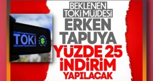 Haberin Detayı İçin TıklayınızErken peşin TOKİ ödemesine yüzde 25 indirim müjdesi!