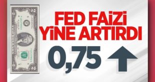 Haberin Detayı İçin Tıklayınız5. kez faizi arttıran FED, bu kez 0,75 baz puan artırdı