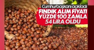 Haberin Detayı İçin TıklayınızErdoğan fındık alım fiyat ortalamasını açıkladı! Fındık alım fiyatı 54 TL oldu