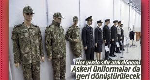 Pilot uygulama sayesinde 250 erin kullandığı eğitim elbisesi, tekrar kamuflajlı eğitim elbiselik kumaş halini aldı. Türk Silahlı Kuvvetleri’nde (TSK) erlerin eğitim elbiselerinin yeniden kullanımı, geri dönüşüm işlemiyle sağlanıyor. Çalışmalar, Kara Dikimevi Müdürlüğü tarafından “Sıfır Atık” projesi kapsamında yürütülüyor. Türk Silahlı Kuvvetleri personelinin ay yıldızlı üniformalarının son teknoloji kullanılarak üretildiği Askeri Fabrikalar …